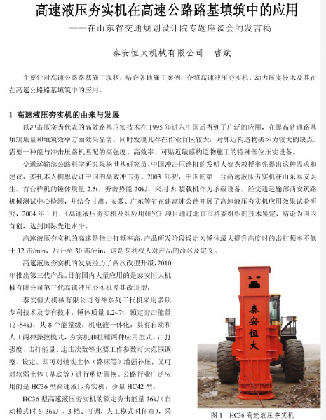 高速液壓夯實(shí)機(jī)在高速公路路基填筑中的應(yīng)用